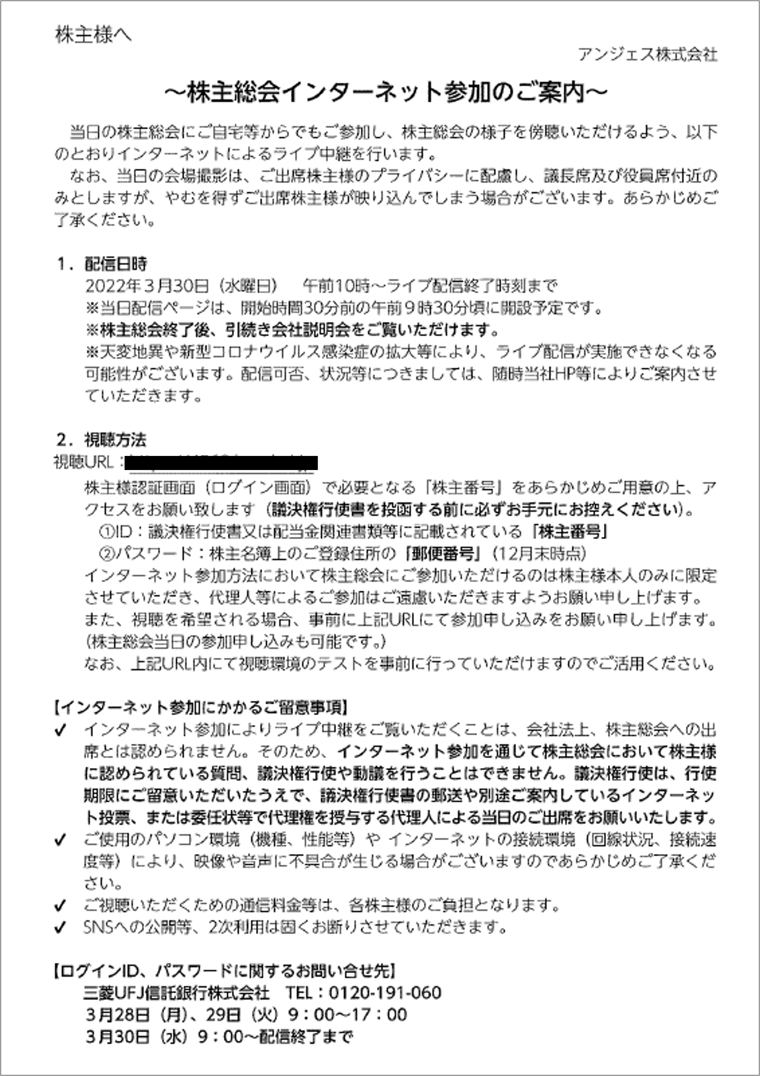 株主総会や会社説明会に関するスケジュールおよびご参加方法に関しては、 郵送物の(4)「インターネットによる株主総会および会社説明会に関するスケジュールのご案内」にまとめておりますので、ぜひご覧ください。