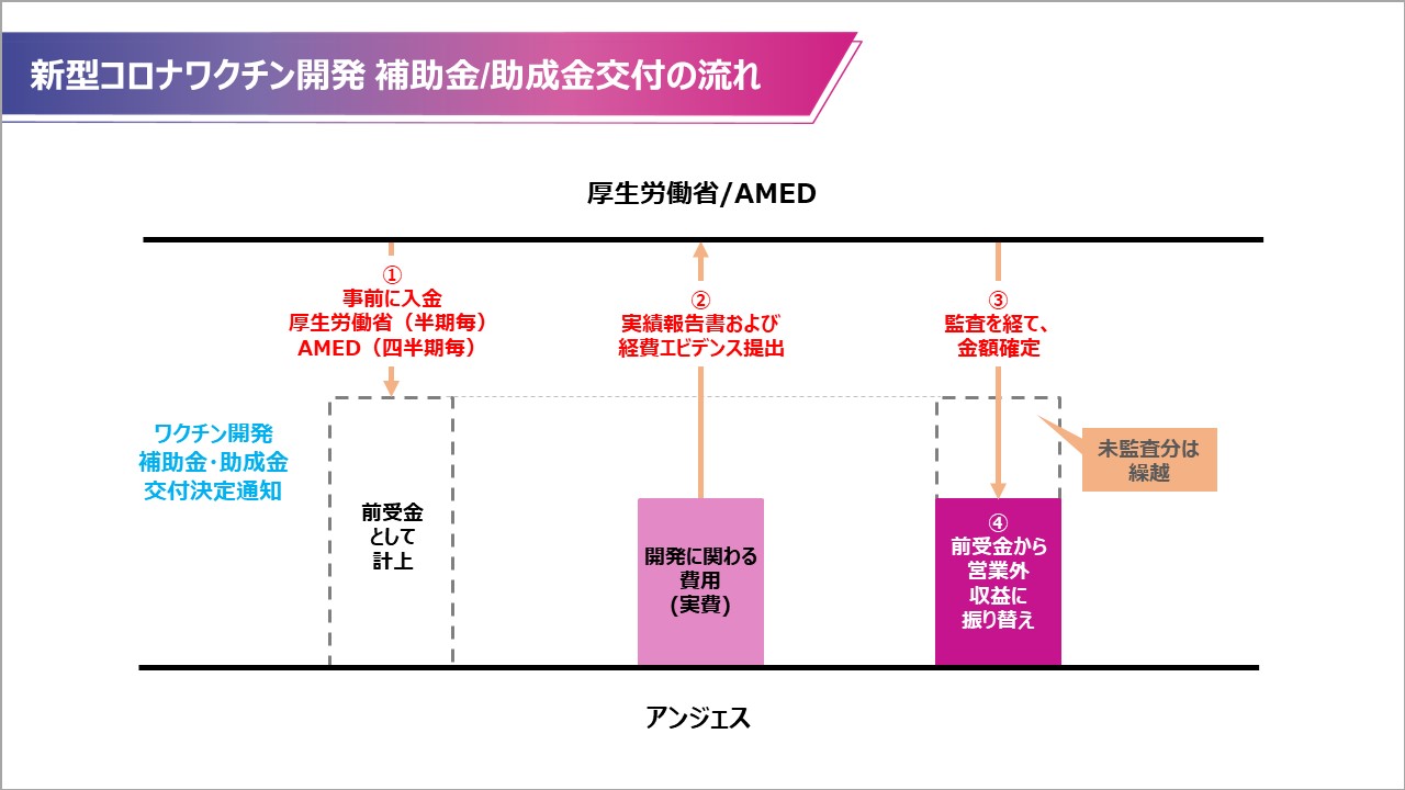 厚生労働省「ワクチン生産体制等緊急整備事業」として受領した助成金は監査未了ですが、