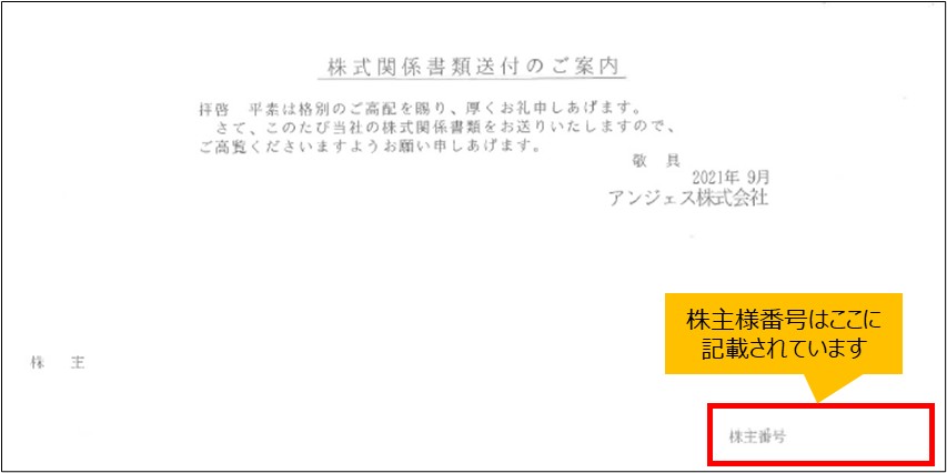 特設サイトのQRコードおよびURLは、9月上旬にお手元に届く株主通信(第23期中間期アンジェス通信)の表紙に記載しております。また、ご質問およびアンケートのご記入の際に、株主様番号をご入力いただきますので、「株式関係書類送付のご案内」に記載の株主様番号をご確認くださるようお願いします。